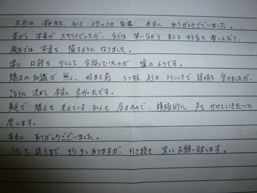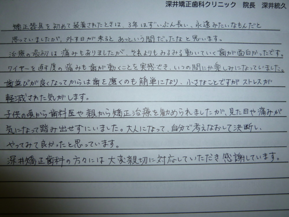 続いて、ブラケット装置卒業の方の感想文も