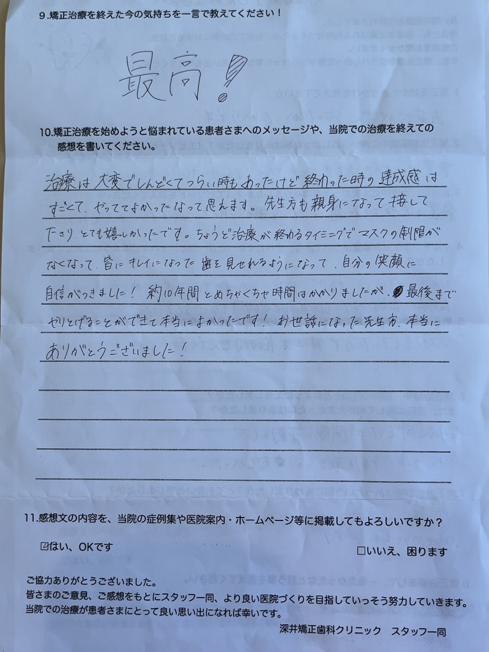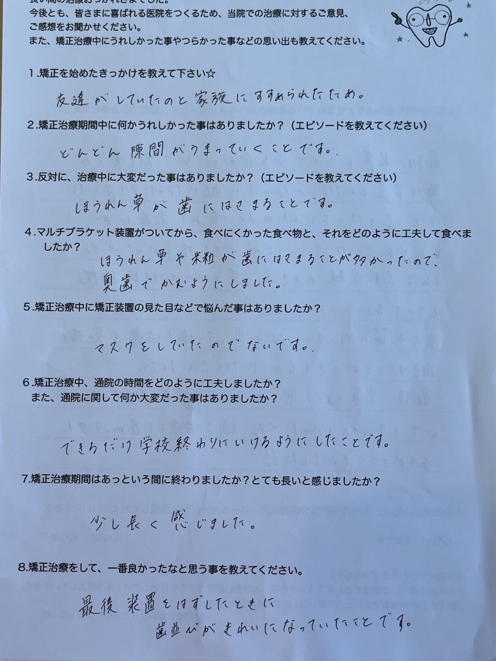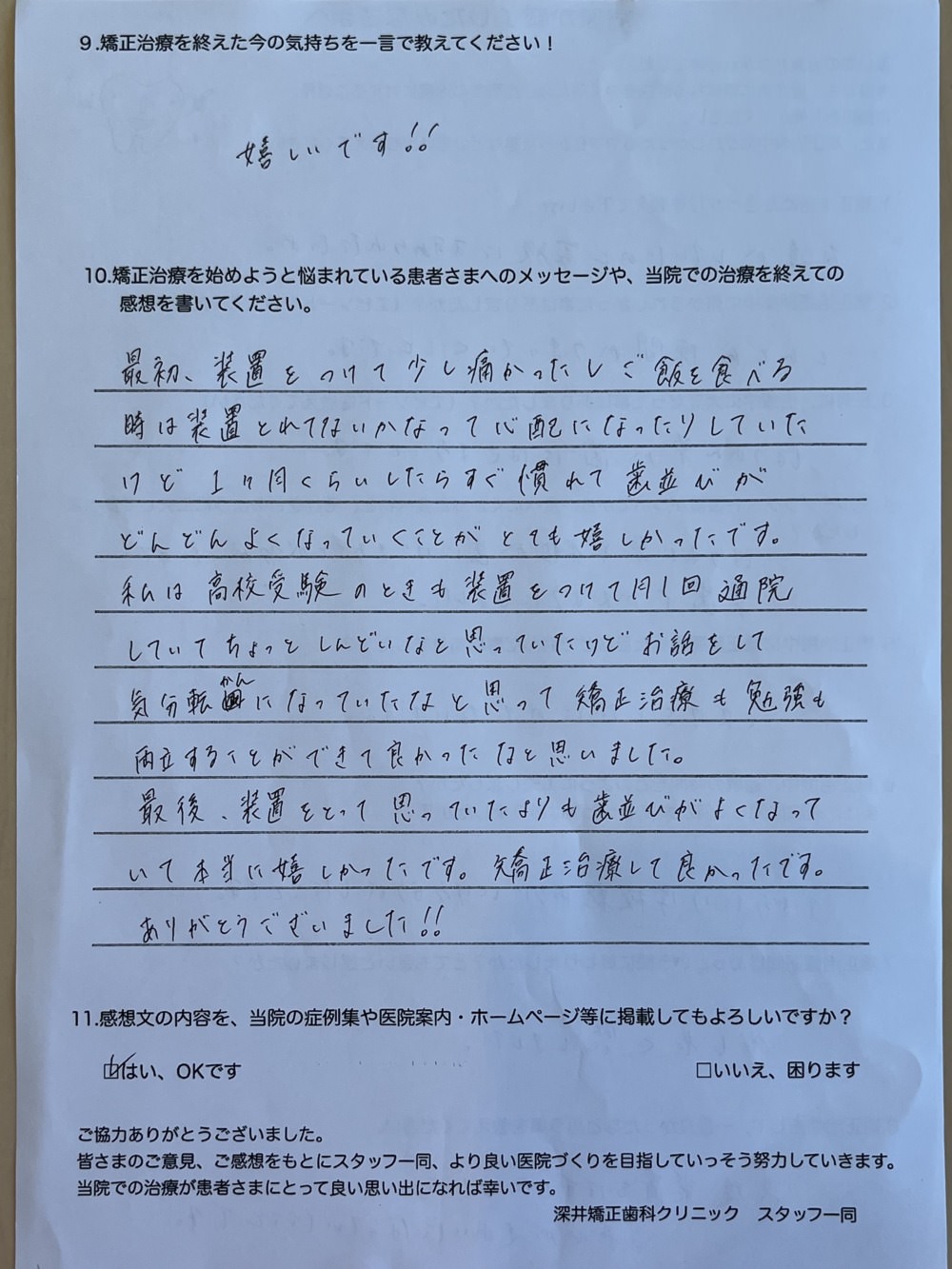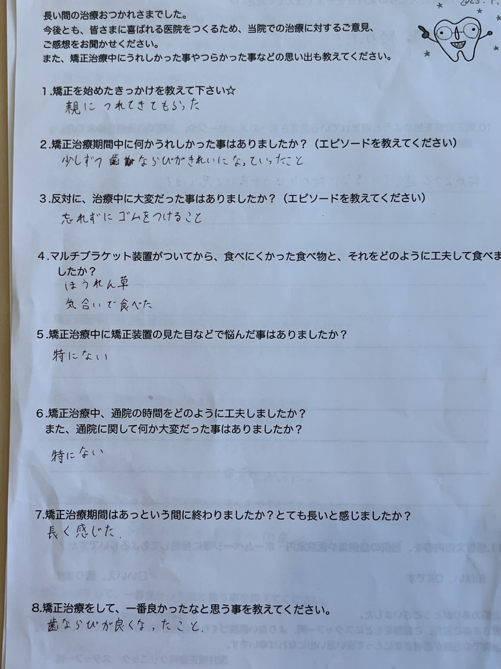 今回マルチブラケット装置卒業された方のアンケートを掲載します。
