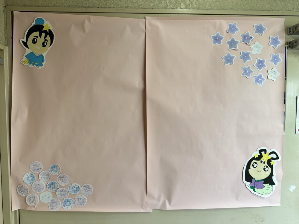 今回は皆さんの願いが花開くことを願って紫陽花と桔梗の花にねがいごとをかいていただいております。