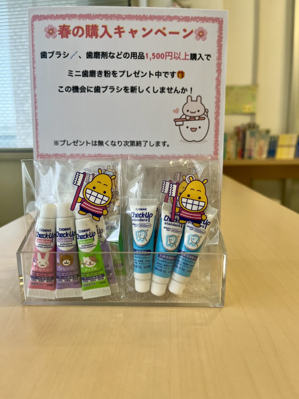 「春の歯ブラシ購入キャンペーン」を開催してます。