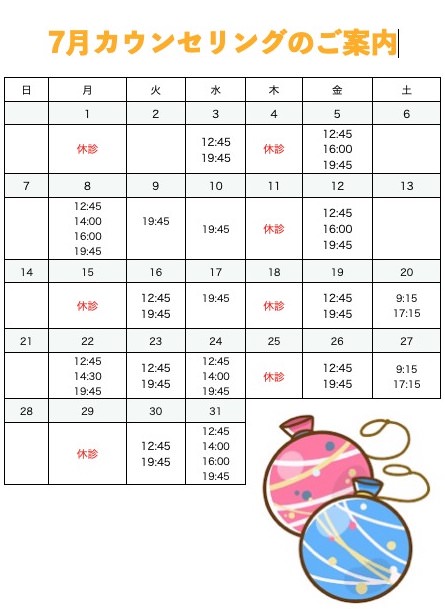 さて、今月のカウンセリングご予約状況のご案内です👏