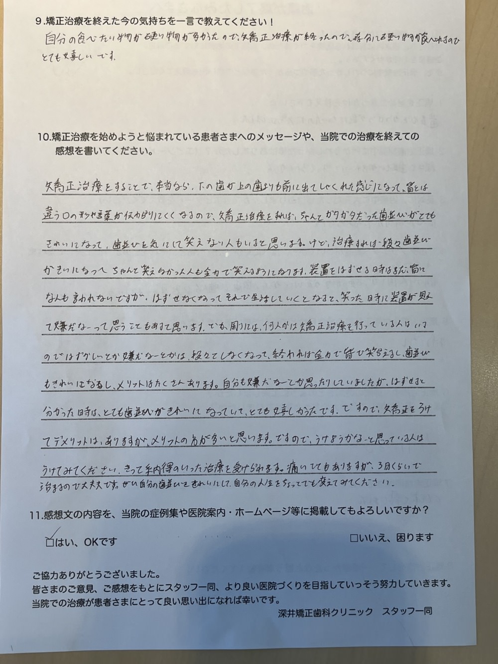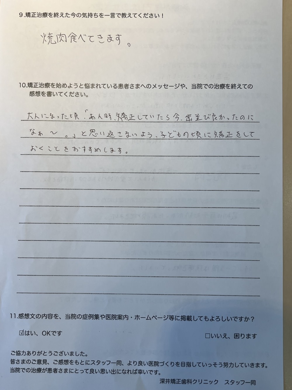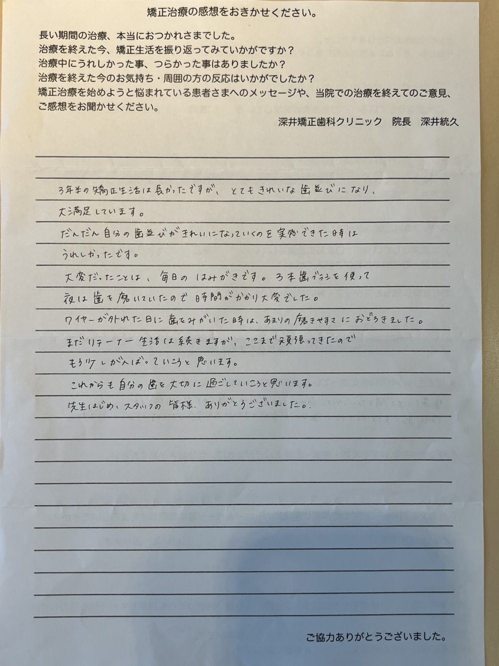 では、ブラケット卒業された方のアンケート文紹介していきます‼︎