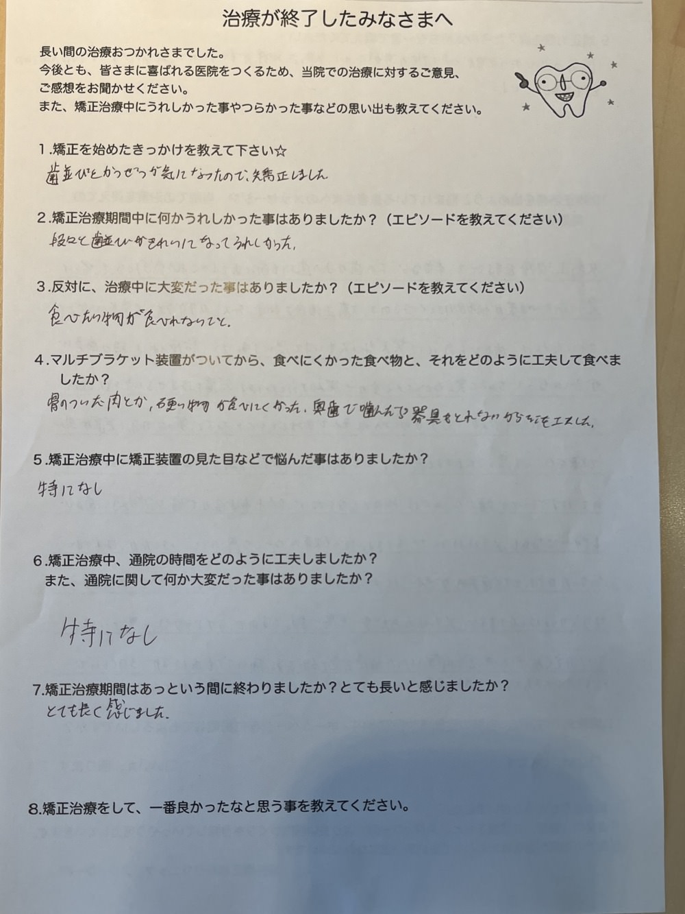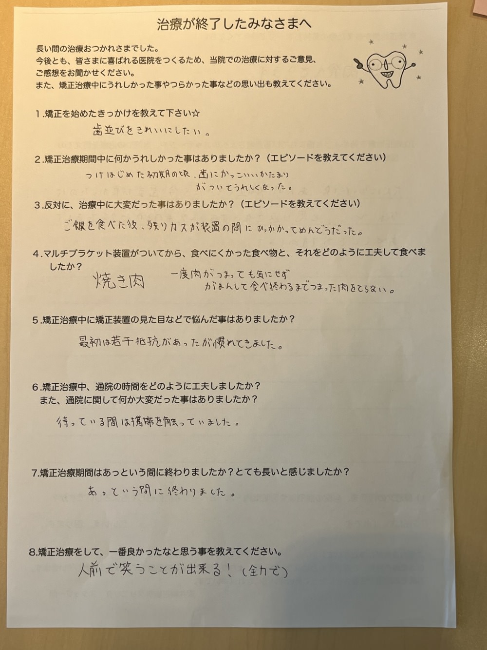 では、ブラケット卒業された方のアンケート文紹介していきます‼︎