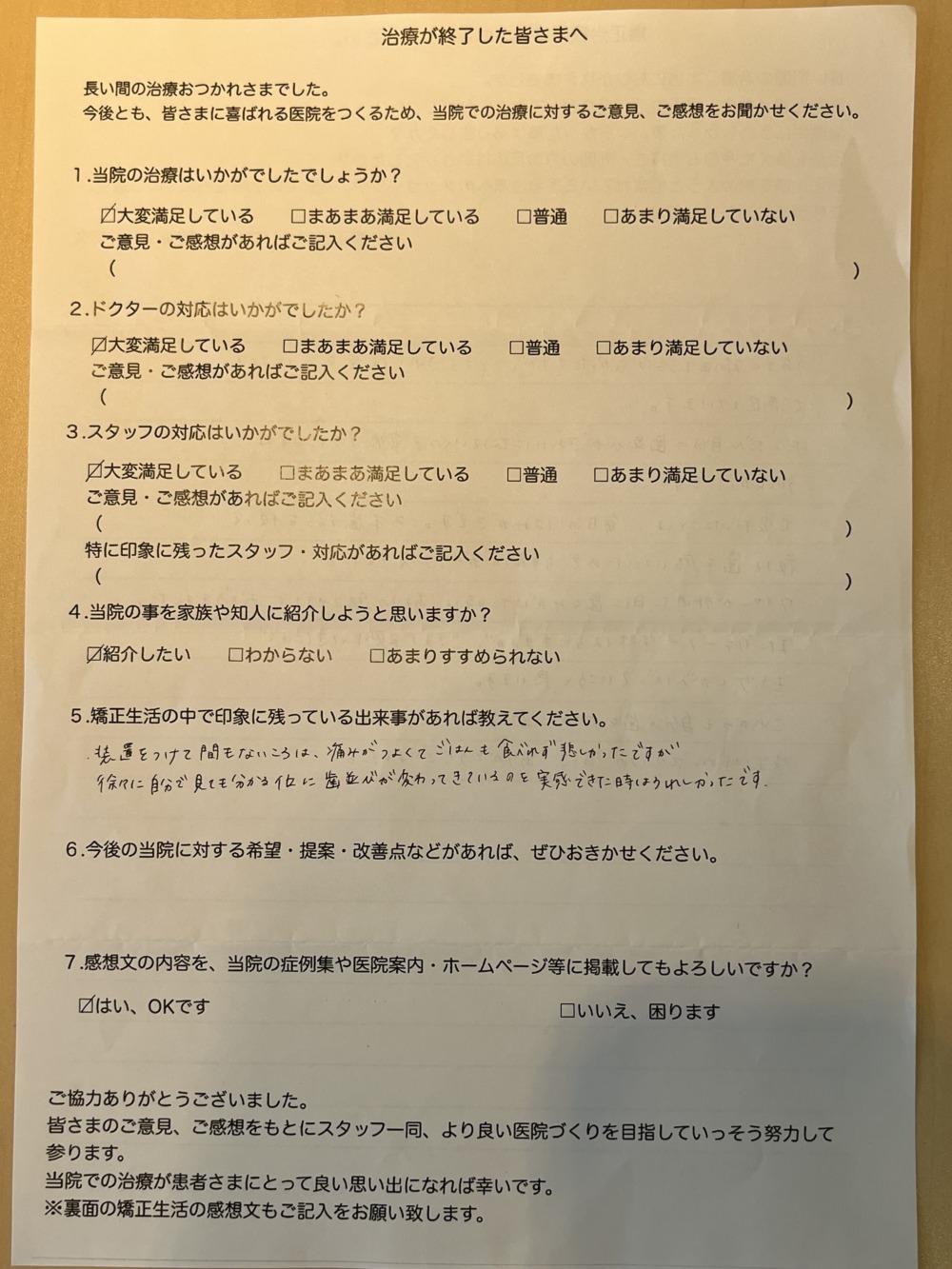 こんなにびっしりアンケート書いてくれて、気持ちがよく、伝わりますね☺️