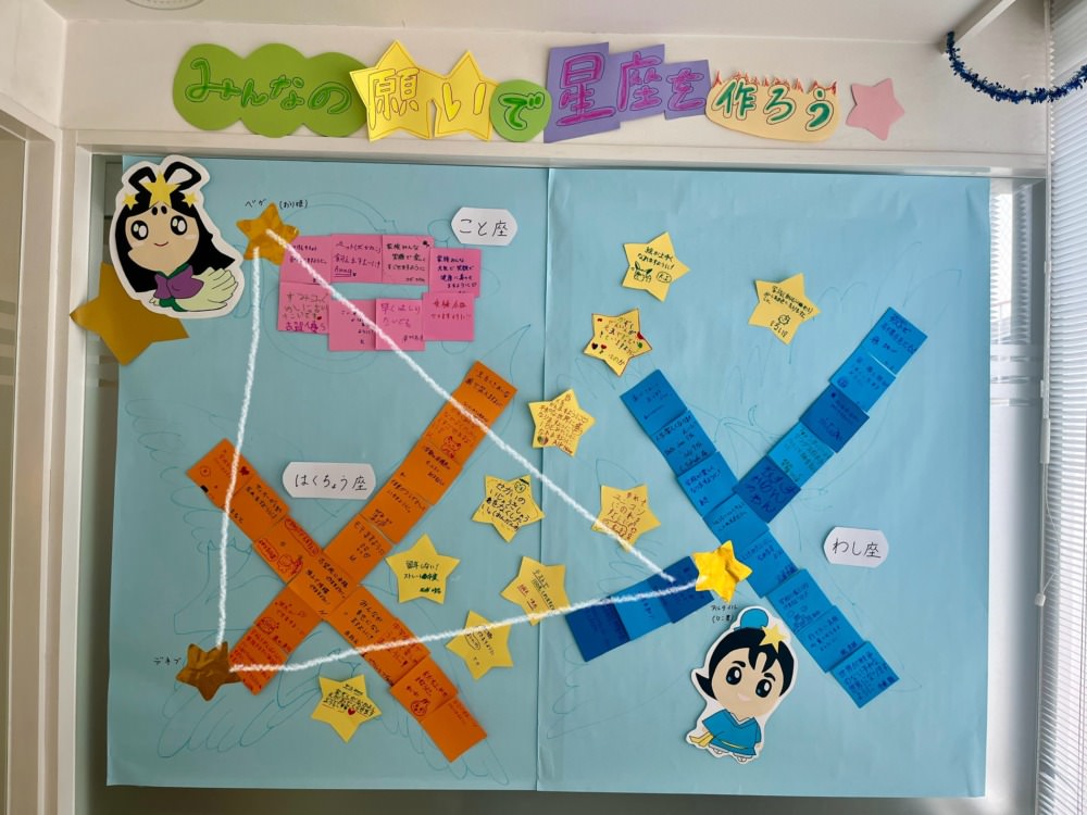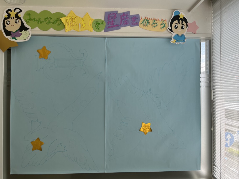 みんなの願い事で七夕の星座を作ろうと言う事で、初めは下描きのみ(よく見ると薄っすら描いてます!)