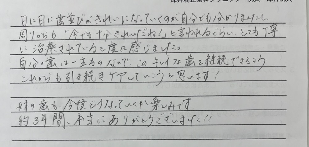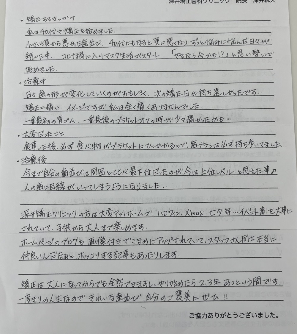 40代女性の方です。矯正についてよく勉強されていて、質問されたり治療にも熱心な患者さまです☺️