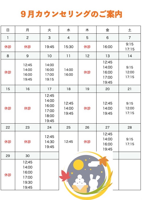 さて、今月のカウンセリングご予約状況のご案内です👏