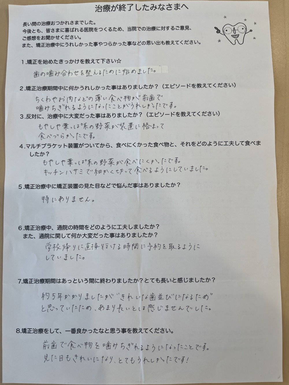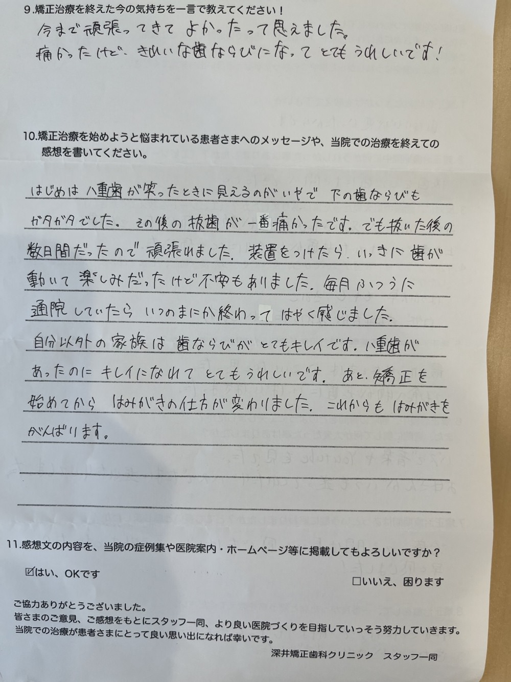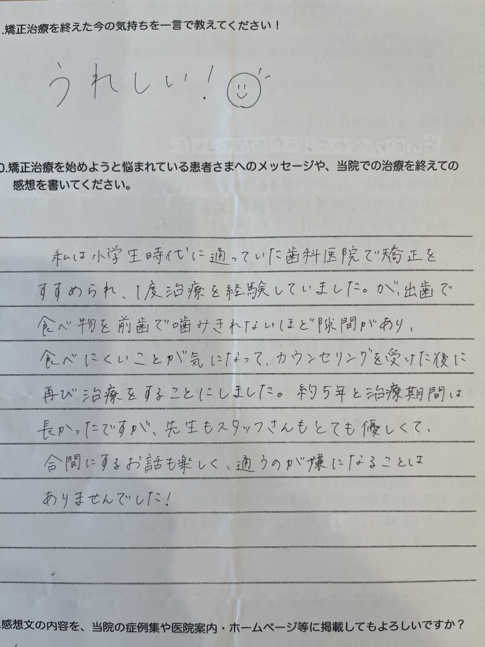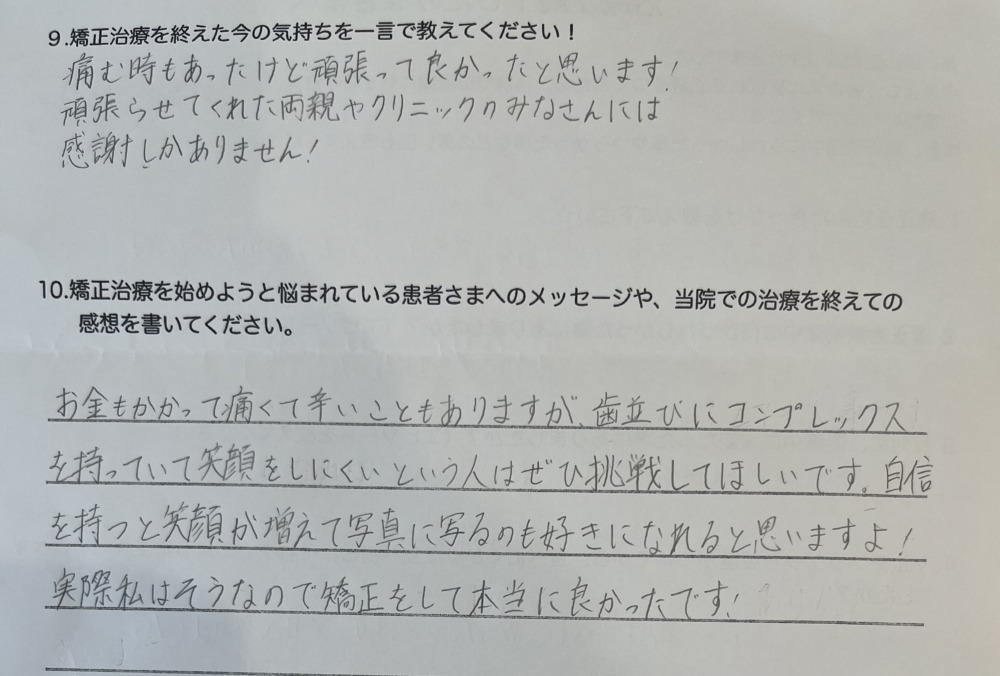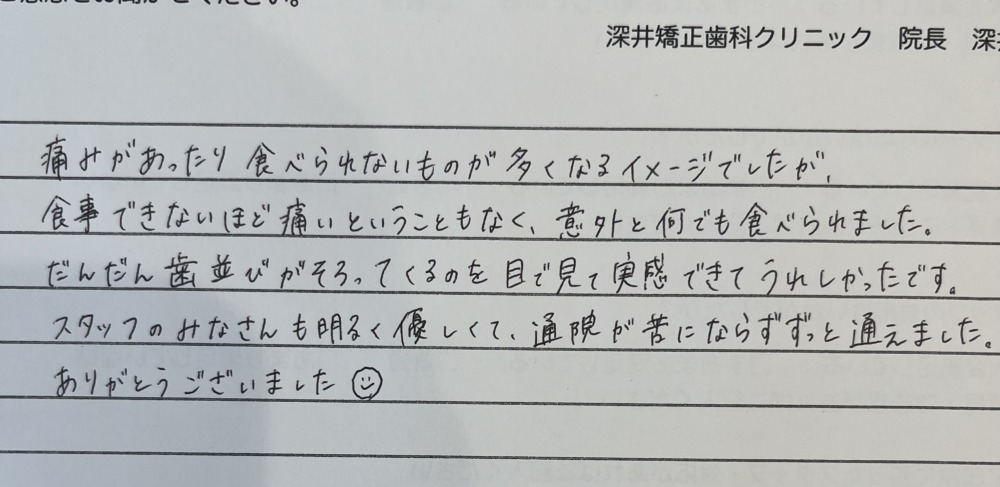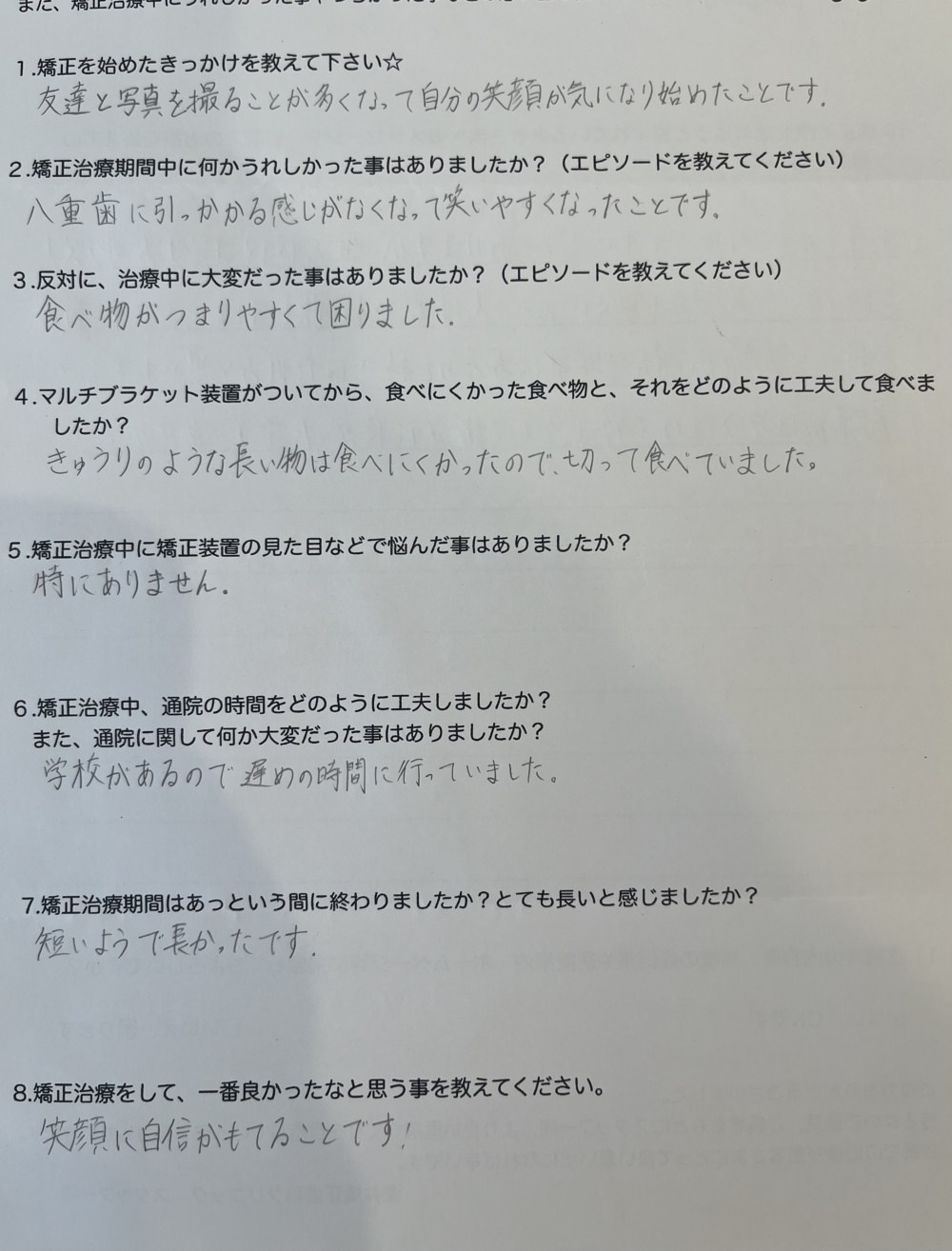 大学生女性、一般歯科の他院で矯正をされていましたが、縁あって当院で始められた方です。