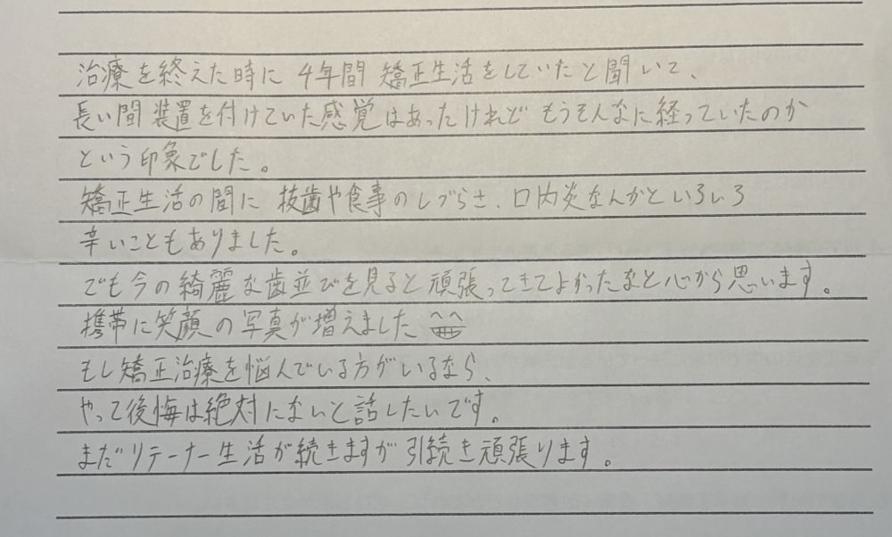 こちらの患者さんのように、治療期間初めは長いと思ってたけど…終わってみればあっという間だった‼️と言う感想文が、1番多いように感じます😊